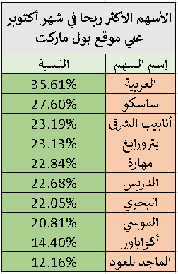الأسهم الأكثر ربحًا في شهر أكتوبر على موقع بول ماركت